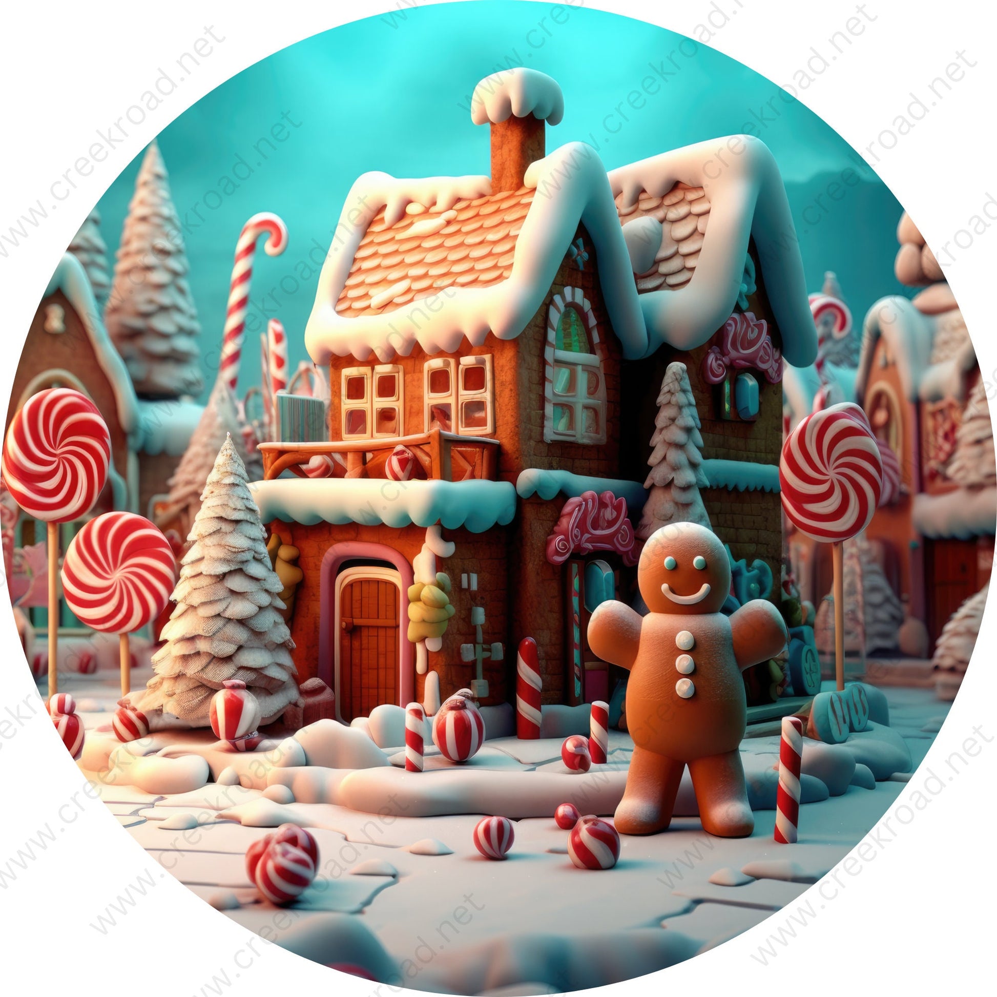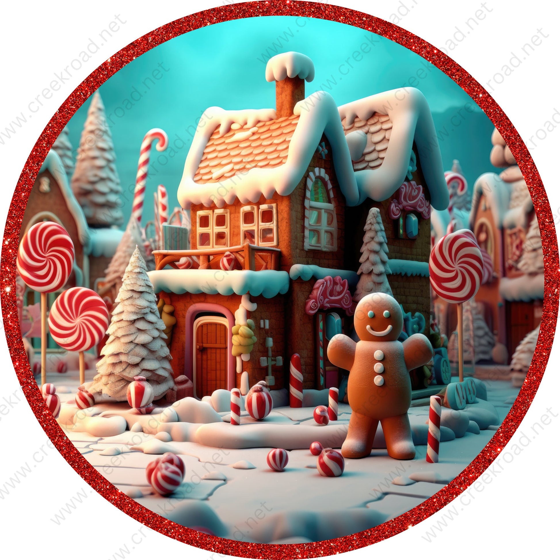 Christmas Gingerbread House Man Candyland Glitter Wreath Sign-PICK YOUR BORDER-Holiday-Sublimation-Attachment-Decor