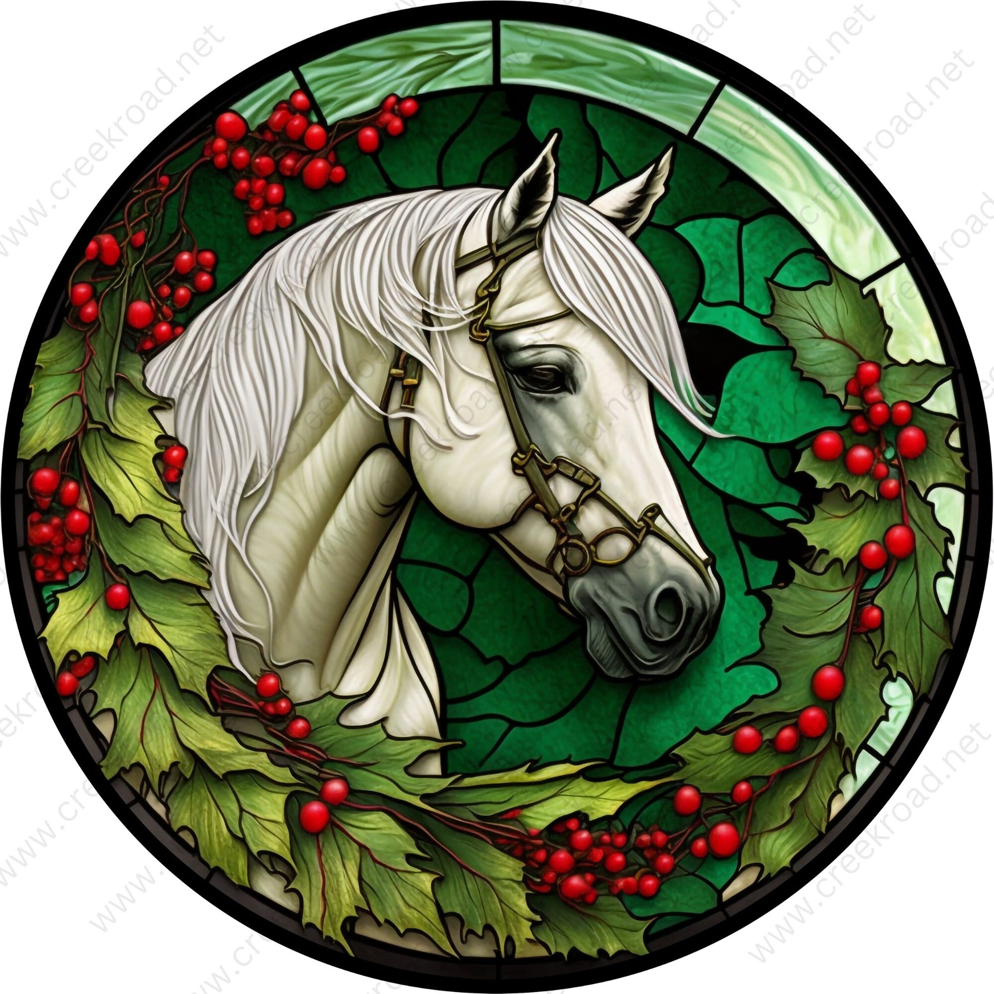 Christmas Horse With Holly Green Wreath Sign-Holiday-Sublimation-Attachment-Decor