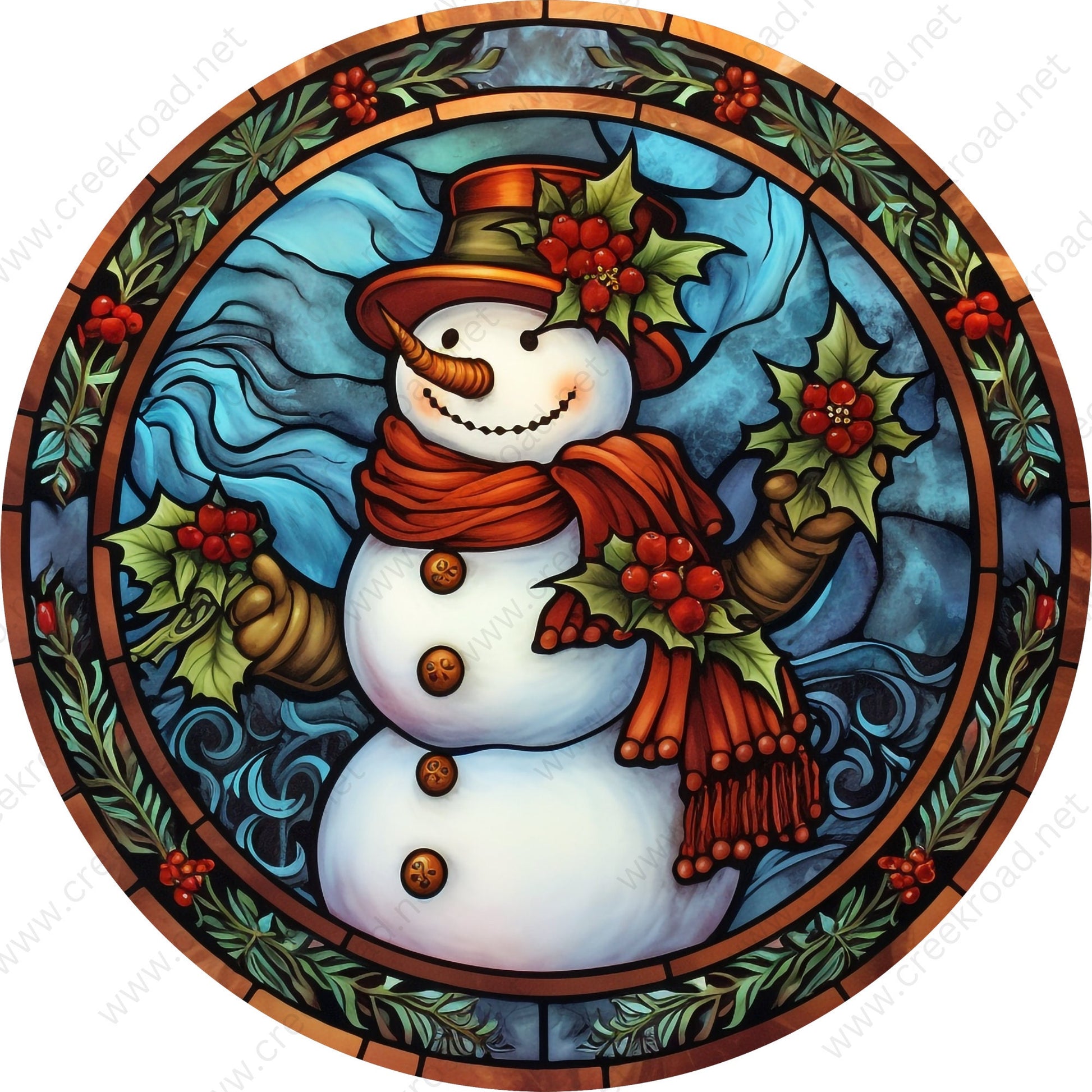 Christmas Snowman Holly Border Red Green Blue Wreath Sign-Holiday-Sublimation-Attachment-Decor