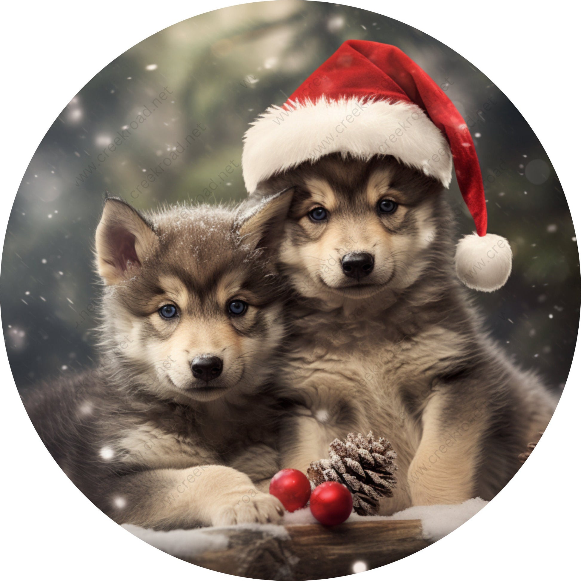 Christmas Wolf Pups Wreath Sign-Christmas-Sublimation-Attachment-Decor