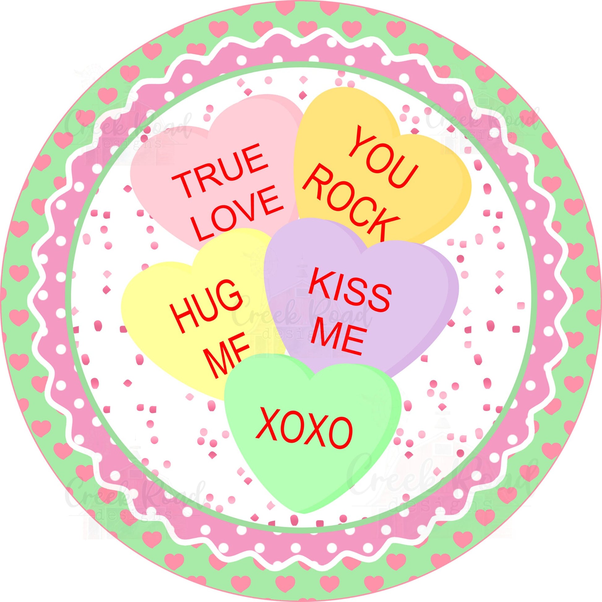 Conversation Hearts Green Pink Hearts Valentine Wreath Sign - Valentines Door Decor