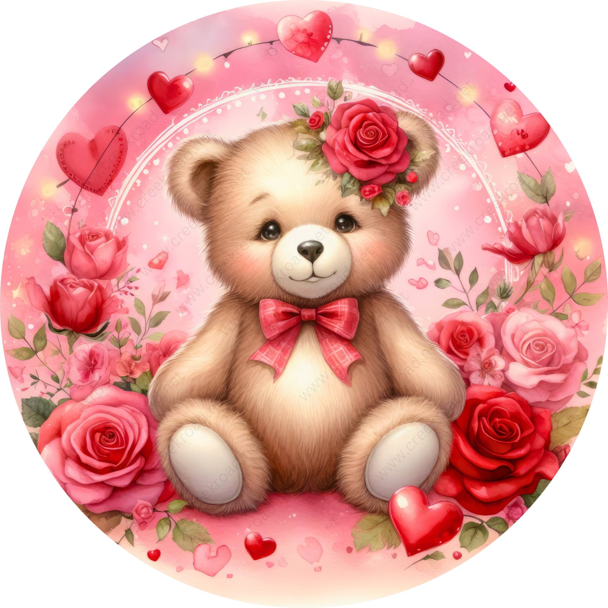 Cute Valentine Bear Roses Wreath Sign-Aluminum-Valentines-Decor