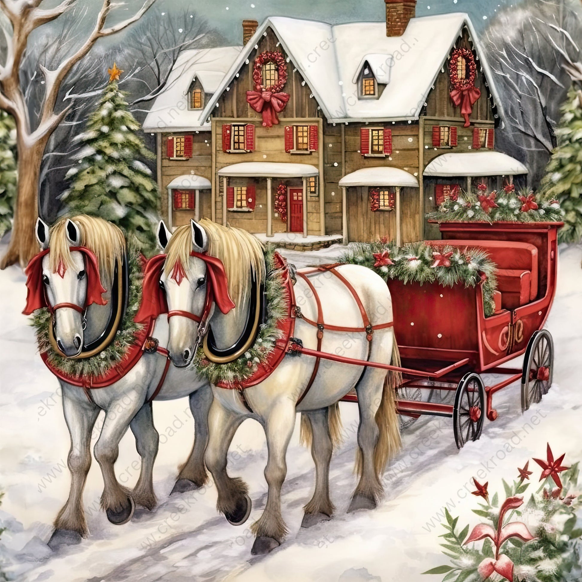 Horse Drawn Carriage in the Snow Wreath Sign 10"x10" square-Sublimation-Round-Christmas-Winter-Decor