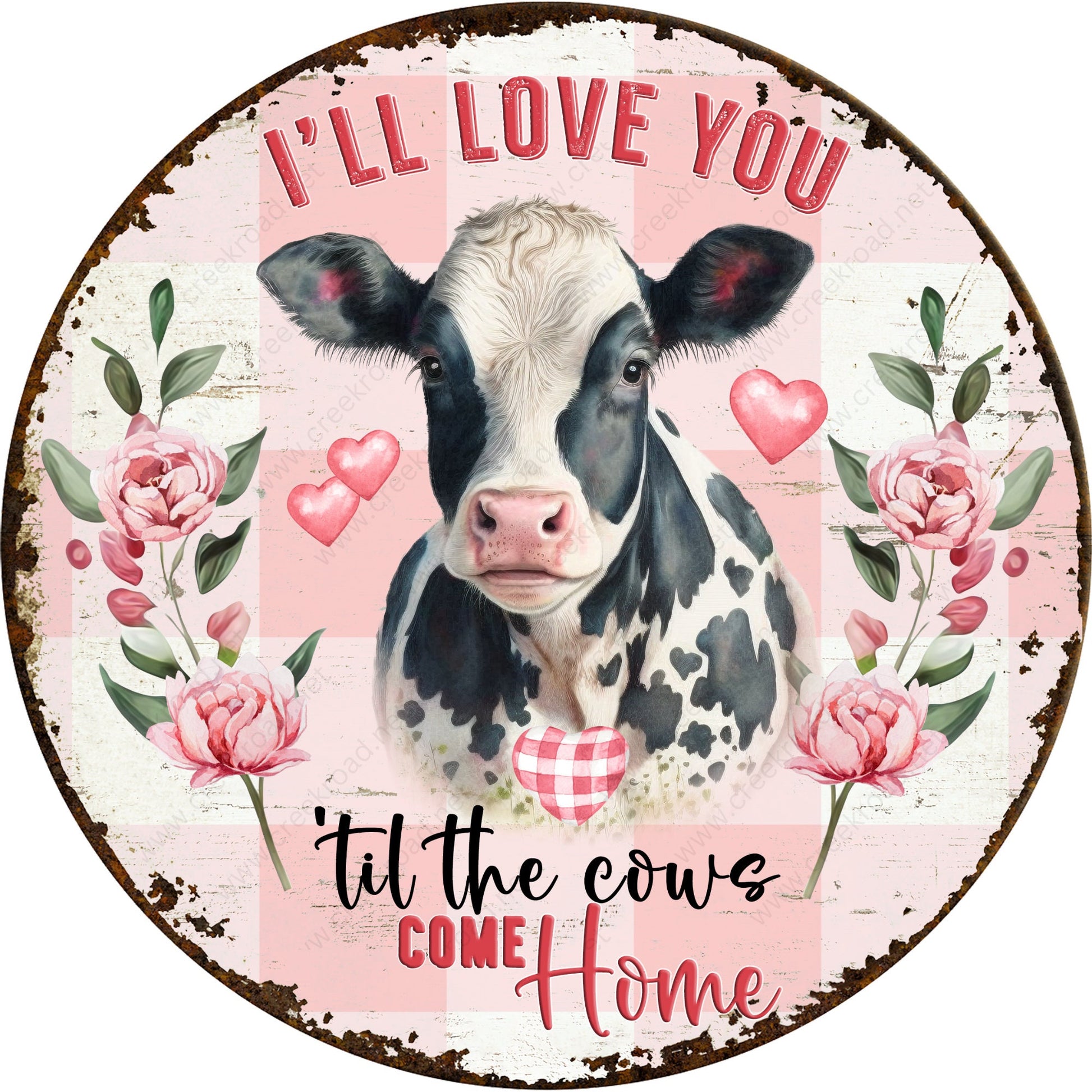 I'll Love You Til the Cows Come Home Distressed Faux Rusted Border Wreath Sign-Decor
