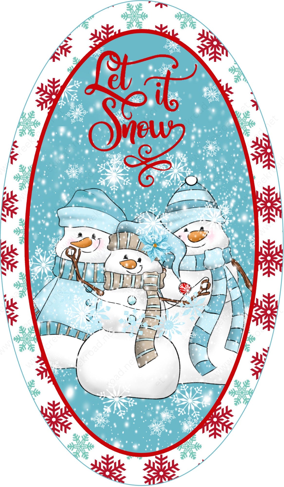 Let It Snow Christmas Snowman Wreath Sign-7"x12" Oval Sublimation-Round-Chistmas-Winter-Decor