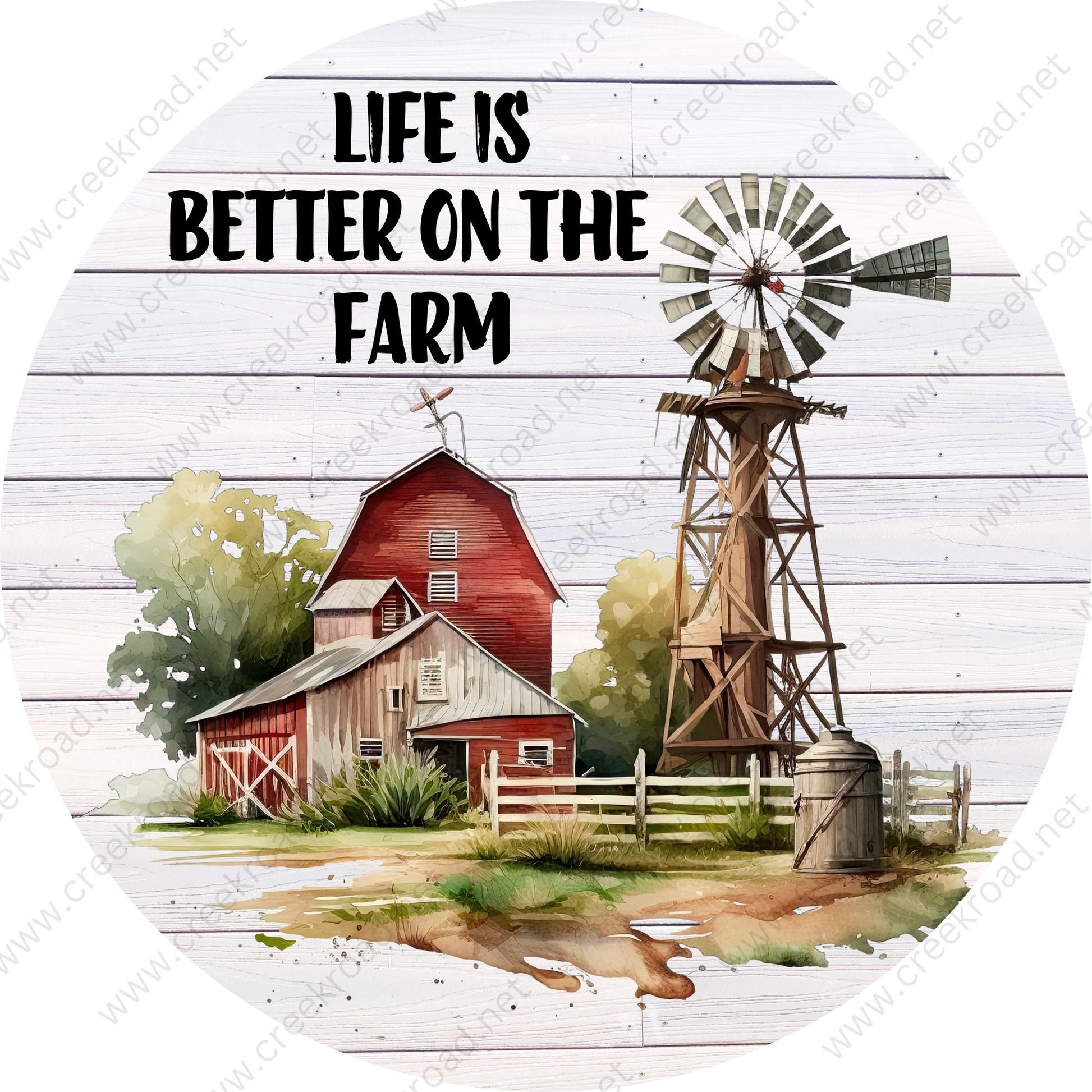 Life is Better on the Farm Barn Windmill Shiplap Background Wreath Sign-Round-Farm-Western-Everyday-Spring-Sublimation-Attachment-Decor