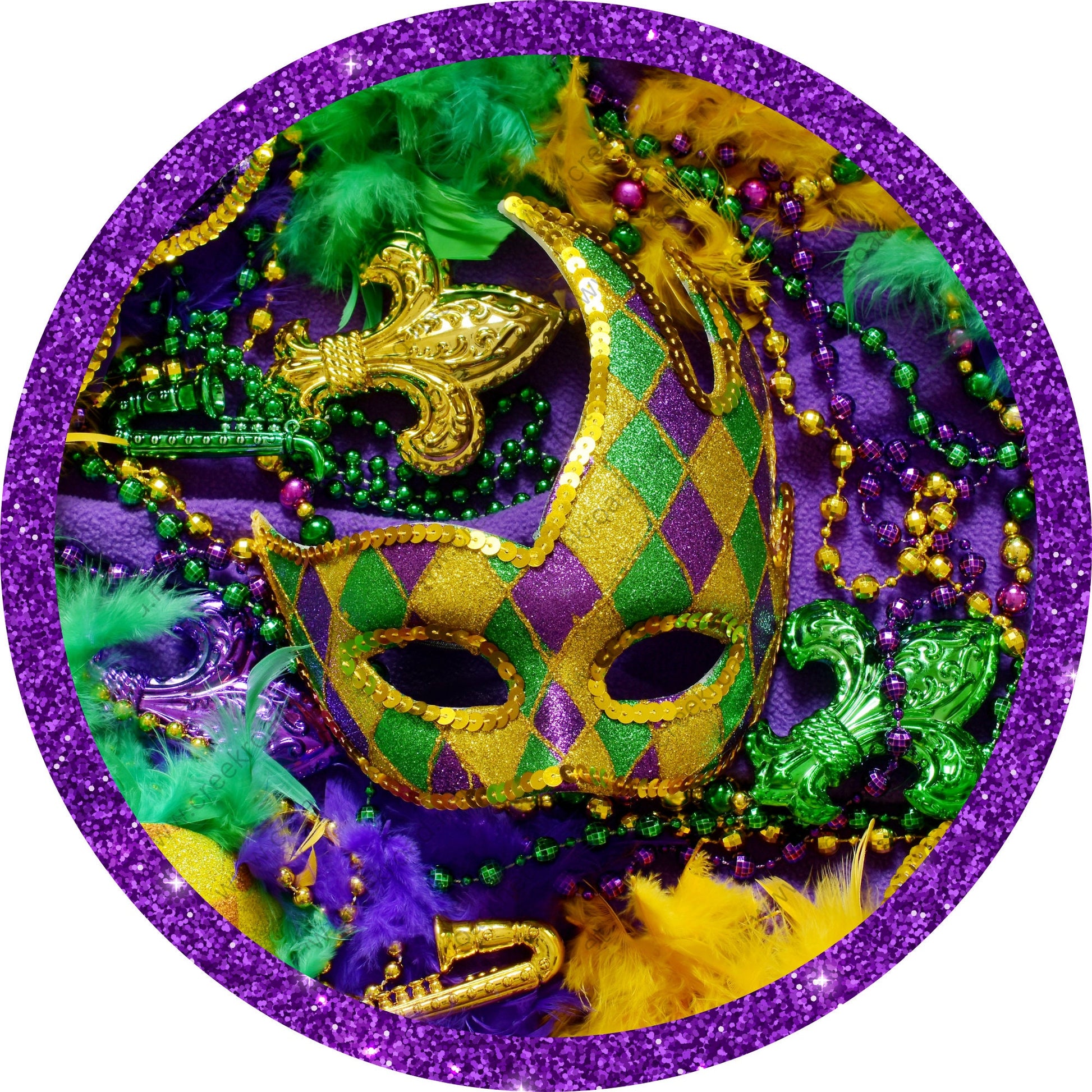 Mardi Gras Mask Beads Purple Glitter Border Wreath Sign-Sublimation-Deocr-Aluminum
