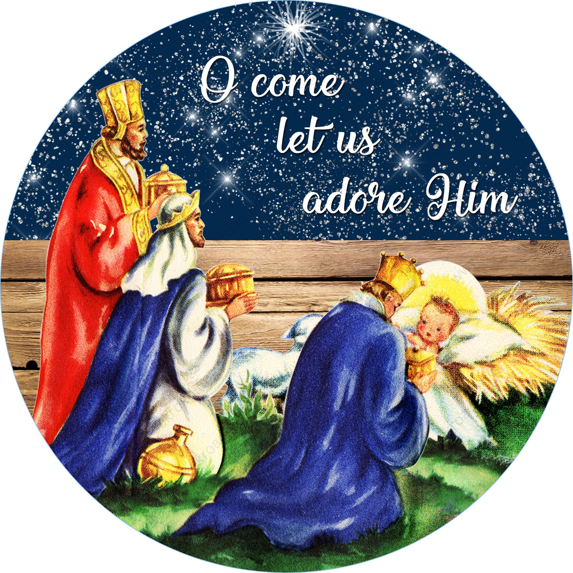 O Come Let Us Adore Him Nativity Wreath Sign-Sublimation-Round-Chistmas-Winter-Decor