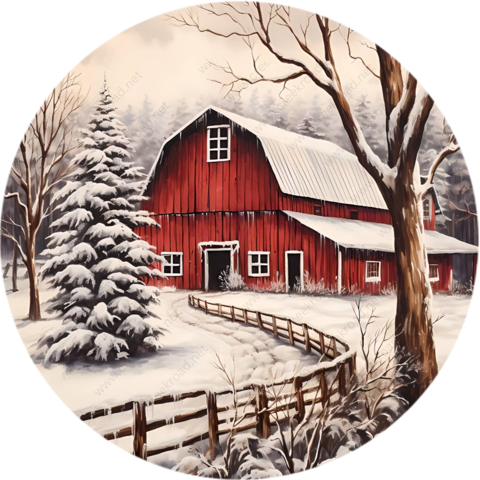 Red Barn Winter Snow Wreath Sign-Holiday-Sublimation-Attachment-Decor