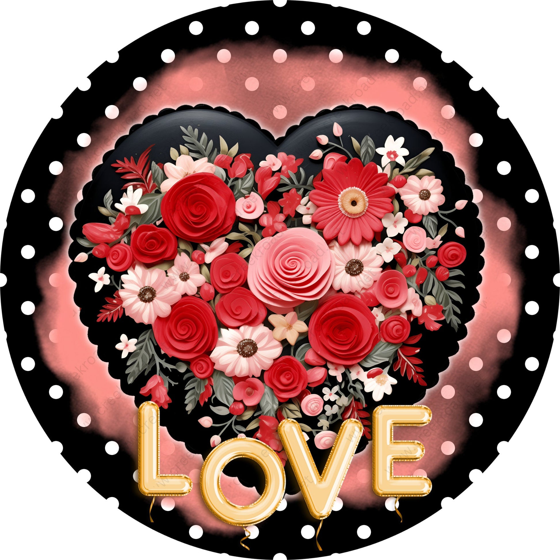 Valentines Heart of Flowers Love Black White Polka Dot Wreath Sign-Decor