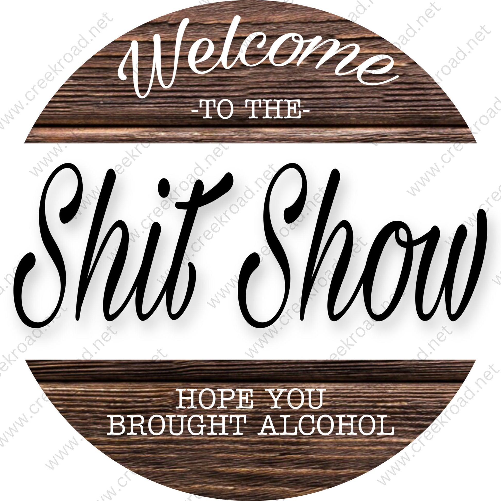Welcome To The Shit Show Hope You Brought Alcohol Brown Shiplap-Attachment-Sublimation-Decor